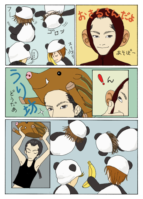 ウケといえば被り物だ(ソプ的思考) サル→ラルダ無視 G:ソプでやったそうですね、サルの被り物 どうして?何で?松井には謎です 桜澤、被り物が好きなの? ウリ坊→ラルダ無視 これは去年の天嘉 さすがに被ってはいないようですが こんなの作るバンドって一体? どこからこの発想は生まれるんでしょうか? 桜澤、深し